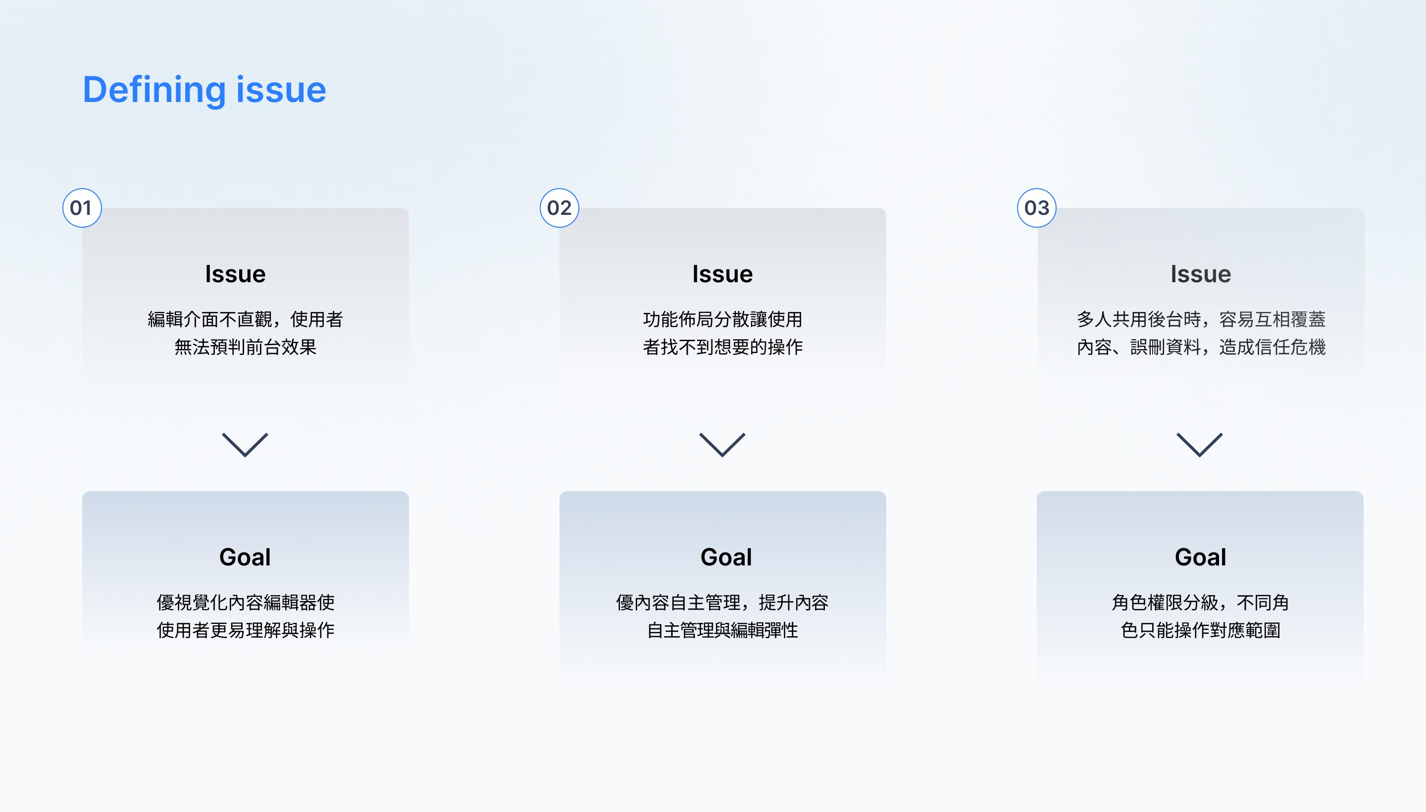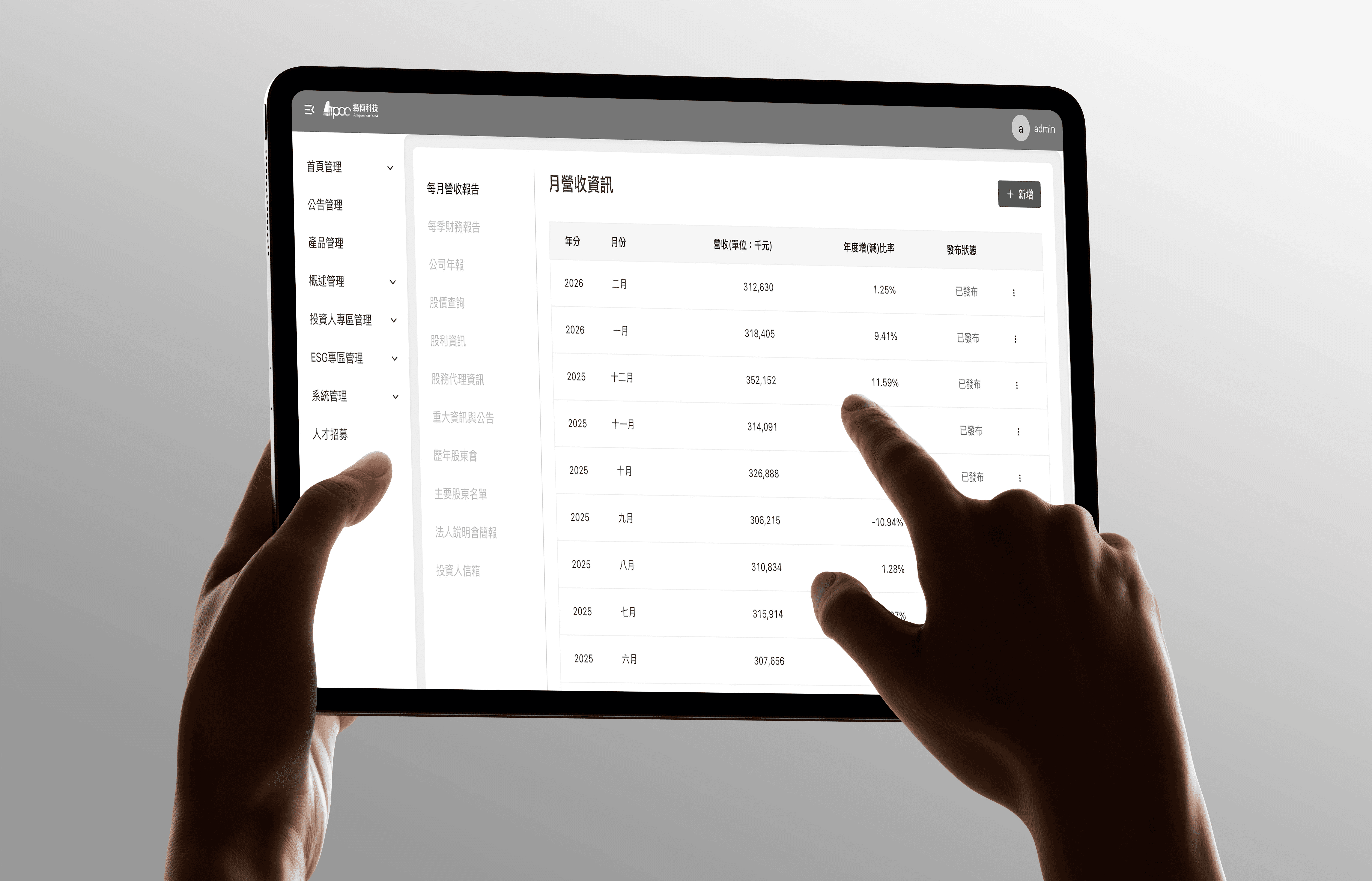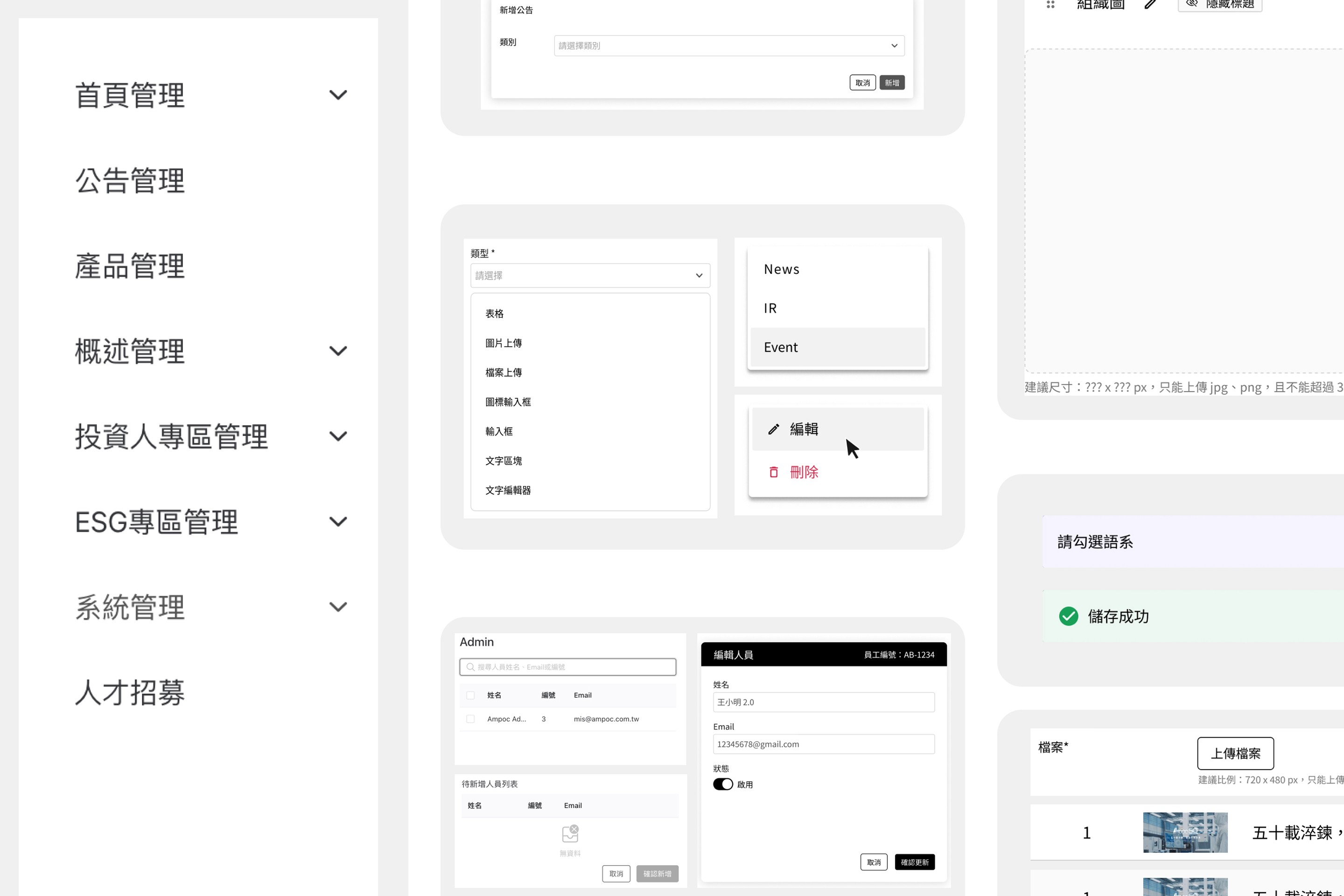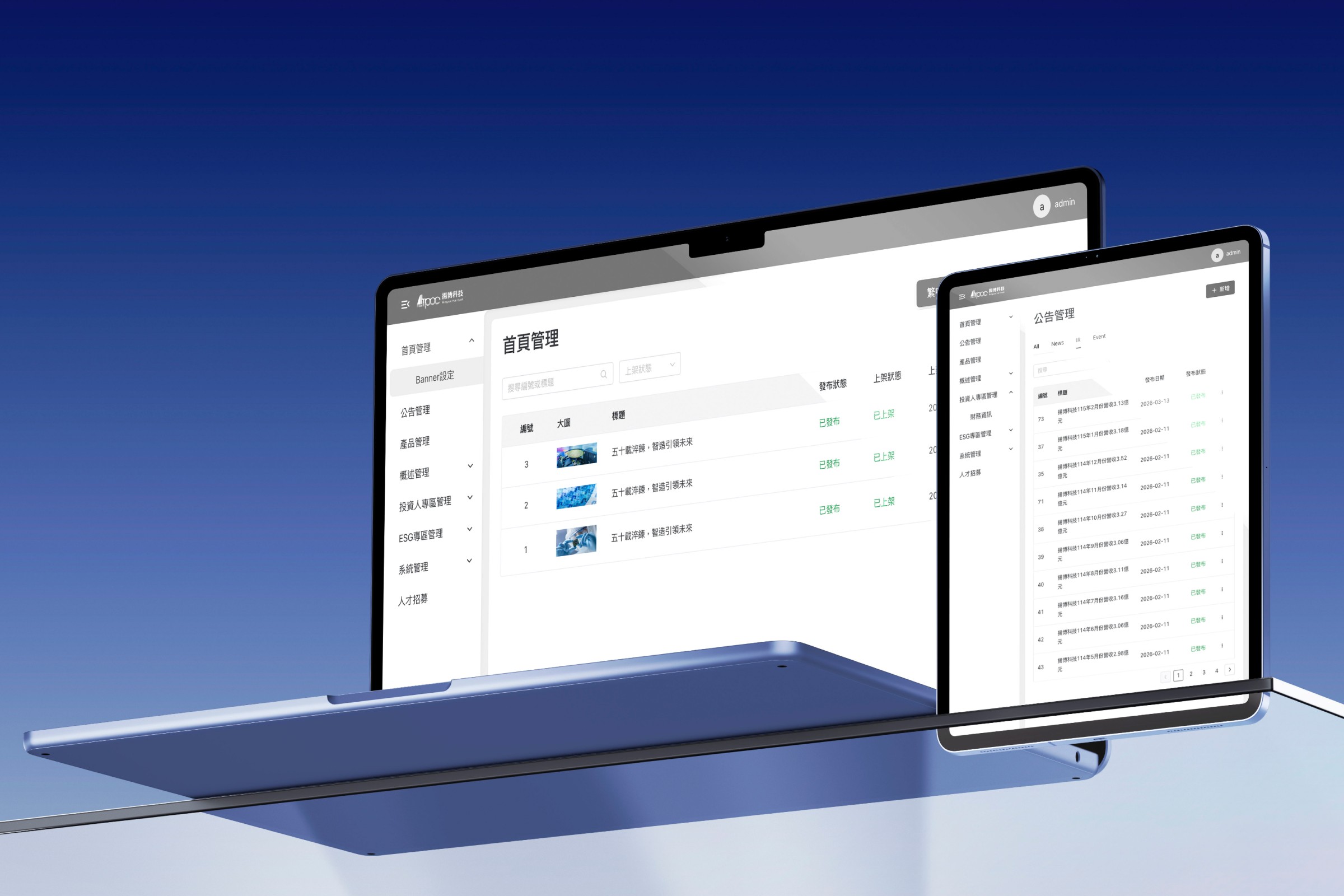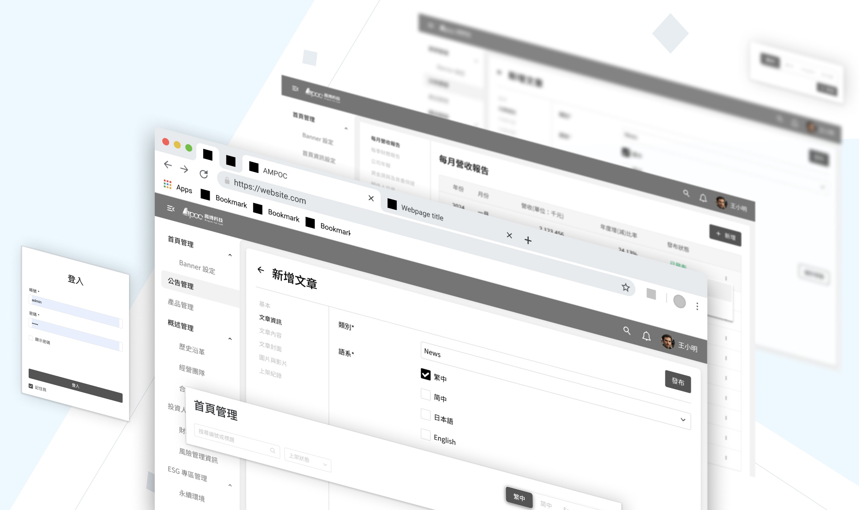 以統一設計語言與資訊層級邏輯,建立清晰的後台介面架構,強化操作流暢性與視覺一致性。透過彈性的內容更新機制降低更新、維護等條件,確保資訊更新精準即時呈現於前台,實現高效的內容管理平台